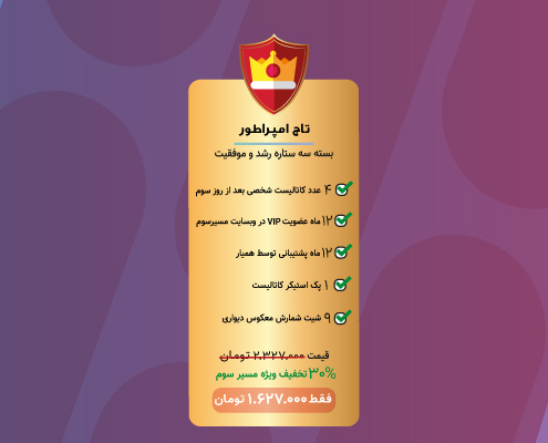 بسته سه ستاره تاج امپراطور بسته کامل کیمیای خوشبختی است که با فراهم نمودن بهترین ابزارها به شما در رشد و موفقیت شخصی کمک میکند.
